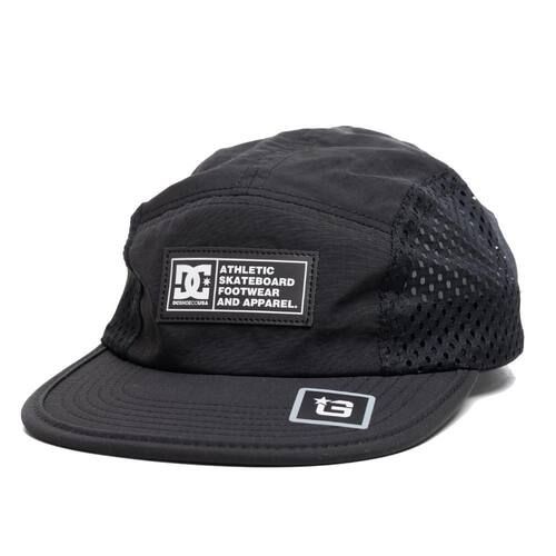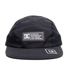 Boné Dc Shoes five panel, desestruturado, aba reta, strapback com fecho tic-tac, silk relevo no painel frontal e na lateral esquerda e tecido poliamida.