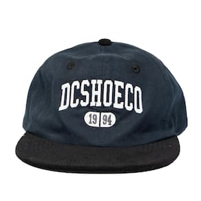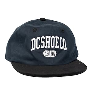 Boné Dc Shoes desestruturado 6 painéis, snapback com ajustador de metal, aba reta, bordado 2 cores no painel frontal, tecido de sarja na copa e tecido de veludo na aba.