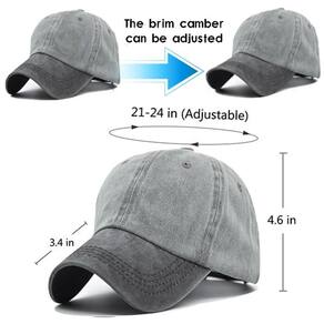 Boné de beisebol vintage com design de cores contrastantes, ajustável, não estruturado, lavado, envelhecido, chapéu de pai para homens e mulheres (EUA, alfa, tamanho único, preto+cinza)