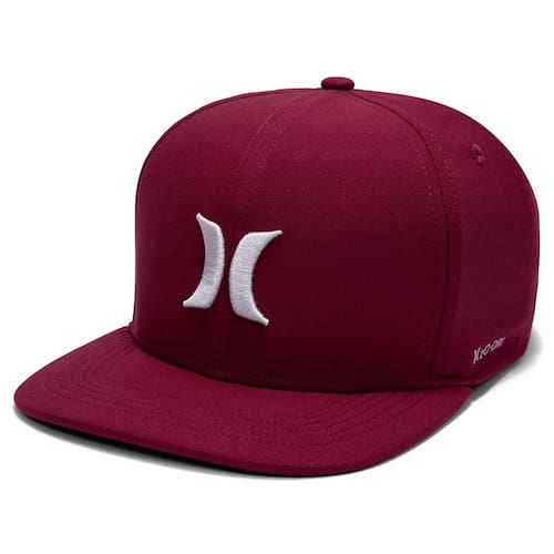 Boné Hurley H20-DRI, tecido leve com respirabilidade, bordado ICON 3D, heat transfer lateral refletivo, regulador traseiro e etiqueta bandeira ONE&ONLY.