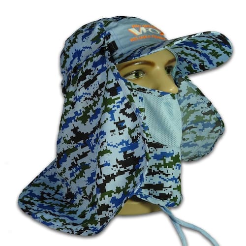 Boné Para Pescaria Proteção Lateral e Frontal V-Fox Boné especialmente desenvolvido pela V-Fox. Fabricado com tecido de qualidade produto de excelente qualidade, proporcionando muito conforto, bordado em alto relevo e possui regulagem de tamanho. Possui proteção nas laterais e na frente, além de ter alça de segurança para o boné não sair voando As proteções são presas com botões e tiras aderentes , totalmente removíveis. Um produto top de linha para pessoas exigentes, sem dúvidas a sua performance será muito melhor com os bonés V-Fox Especificações: Contém: 1 peça Composição: 100% Poliéster Cores: Azul Camuflado Regulagem de Tamanho: Sim Algumas opiniões de clientes: O produto é perfeito, protege mesmo dos raios solares. Quem estiver com dúvidas pode adquirir o produto sem receio, pois é de excelente qualidade. Aba grande, reforçado botão não abre com vento , protetor de face e de nuca com tamanhos excelentes, tecido fresco não esquenta, excelente produto. Leve, anatomicamente ajustável, confortável e com acabamento de fino gosto. Marca: Não Informado