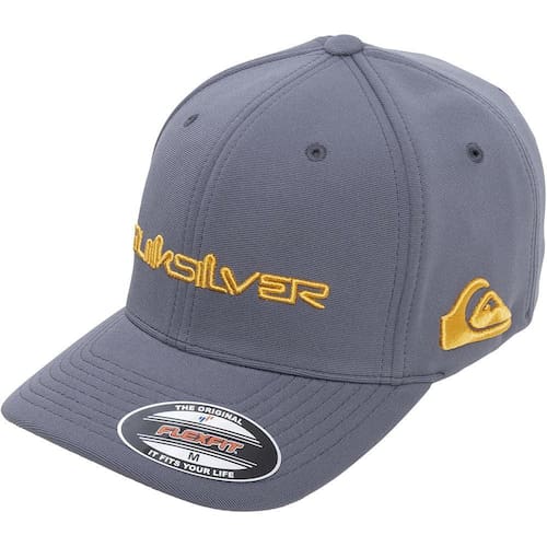 Boné Quiksilver 6pannel Flexfit, tecido flexível, faixa anti suor na circunferência interna, bordado assinatura aplicado no painel frontal, bordado logo na lateral esquerda, aplicação de etiqueta na barra traseira, aba interna lisa contrastante e boné fechado.