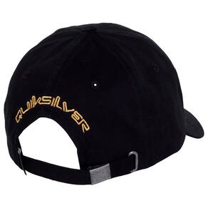 Boné QuikSilver feito em tecido sarja leve, bordado centralizado nos painéis frontal e traseiro, etiqueta aplicada no interno e na lateral do fecho traseiro e fecho traseiro do próprio tecido com fivela de metal.
