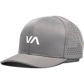 Boné coleção RVCA SPORT, aba curva estruturado, em tecido de microfibra com detalhes de painéis laterais e traseiros com tecido com furos a laser, estampa alto relevo frontal, fecho de engate tic tac e etiqueta personalizada na parte de trás.