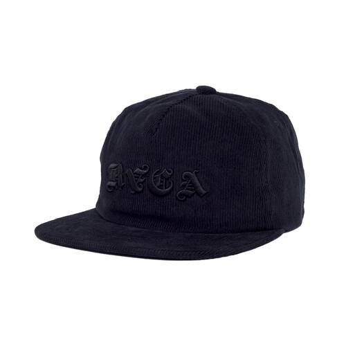 Boné Rvca coleção ANP ARTIST BENJAMIM JEAN JEAN, aba reta desestruturado em veludo cotele de algodão, aplique bordado frontal, etiqueta personalizada na lateral, regulador snapback plástico e etiqueta personalizada atrás.