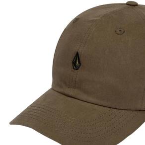 Boné Volcom desestruturado aba curva, bordado Volcom Stone frontal e fechamento em fivela.