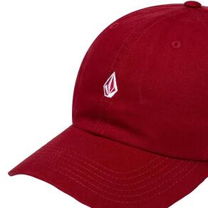Boné Volcom desestruturado aba curva, bordado Volcom Stone frontal e fechamento em fivela.