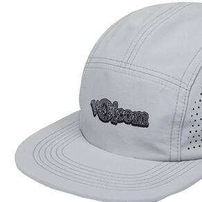 Boné Volcom de 5-panel, aba em EVA, lateral com furos a laser, arte em silk frontal, bolso embutido, fechamento em gorgurão e click.