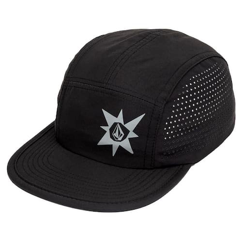 Boné Volcom com fechamento em fivela, modelo 5 pannel desestruturado, silk frontal e bolso embutido com zíper e tela lateral.