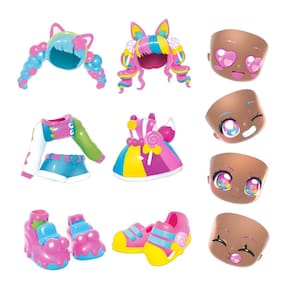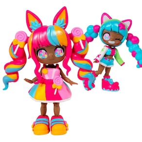 As cores vibrantes e os detalhes encantam crianças e colecionadores. Os rostinhos intercambiáveis oferecem diferentes expressões para estimular a imaginação. O tema Candy & Bubble Gum traz um universo doce e cheio de estilo.