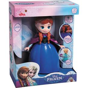 Qual menina não gostaria de brincar com sua personagem preferida. Com essa linda boneca Anna. diretamente da animação da Disney. Frozen. as pequenas vão criar muitas histórias cheias de encanto e magia. Interativa. ela desliza. por meio de bolinhas no seu vestido e. basta apertar sua barriguinha para ela fala até 8 frases do filme. Juntas. elas podem recriar as histórias contadas na animação e outras novas.