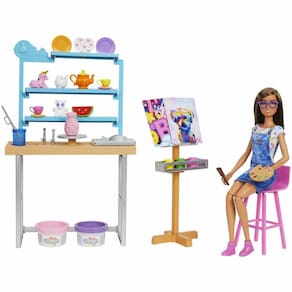 Boneca Articulada - Barbie Dia de Spa - Estúdio de Arte Crie e Relaxe - Mattel: a Barbie sabe a importância de relaxar e cuidar de si mesma. Por isso, a boneca Barbie Estúdio de Arte Expresse e Crie apresenta um conjunto de acessórios com o tema Dia de Spa e uma maneira de relaxar: criando cerâmicas e pinturas. O conjunto Estúdio de Arte vem acompanhado de incríveis acessórios e massinha de modelar da Barbie para deixar a brincadeira mais divertida! Como brincar? • Comece removendo a massa de modelar potinho e enrole-a até formar uma bolinha. • Coloque a massinha no molde com formato de vaso. • Pressione para baixo e revele a nova criação • Coloque o vaso no prato giratório acoplado ao estúdio de arte e escolha um carimbo (corações ou estrelas) • Vire a mesinha do estúdio para pressionar a massa e coloque orgulhosamente a criação na prateleira quando terminar. • Mergulhe o pincel em água "gelada" e pinte as peças de branco para a revelar uma nova arte Detalhes: • As crianças podem brincar e criar repetidas vezes com a massinha • A boneca Barbie também pode fingir que está pintando em seu cavalete com a opção de duas telas coloridas O conjunto da Barbie inclui uma articulada e mais de 25 peças de criação: cavalete de arte, 2 pinturas, banquinho, 4 latas de tinta, 2 recipientes de massa Barbie, 3 objetos de decoração, 1 pincel de esponja, 1 paleta de pintor, 3 peças de exibição de mudança de cor e 7 peças extras INFORMAÇÕES: • Produto: Boneca Barbie Self-Care com Estúdio de Arte Expresse e Crie • Marca: Mattel • Coleção: Barbie • Linha: Barbie Self-Care (Dia de Spa) • Tipo: Conjunto com Boneca e Cenário com Acessórios • Categoria: Bonecas e Cia • Tamanho: - Estúdio: (C) 19.5 cm x (A) 29 cm x (L) 6.9 cm - Boneca: (A) 30 cm • Peso líquido: 56 gramas de massinha de modelar • Conteúdo: 1 estúdio, 1 boneca, 1 cavalete, 2 pinturas, 2 potes de massinha, banquinho, 4 latas de tinta, 3 objetos de decoração, 1 pincel de esponja, 1 paleta de pintor, 3 peças de exibição de mudança de cor e 7 peças extras • Recomendação: para crianças a partir de 03 anos de idade ESPECIFICAÇÕES: • Referência: HCM85 • Código de Barras: 194735014811 • Embalagem (C x A x L): 39.5x 32.5 x 08 cm • Embalagem (Peso): 0.790 kg • Material / Composição: Plástico • Registro: 004948/2021 • Certificado: Órgãos Autorizados - OCP´S (Organismos de Certificação de Produtos) BENEFÍCIOS DE BRINCAR: • Eleva a autoestima • Exercita a memória • Estimula o raciocínio • Exercita o imaginário • Desenvolve a criatividade • Desenvolve percepção visual • Desperta a atenção e curiosidade • Desenvolvimento neuropsicológico • Estimula habilidades motoras básicas • Incentiva a comunicação e linguagem • Desenvolve aspectos emocionais e afetivo • Estimula o reconhecimento de formas e cores AVISO: • As imagens são meramente ilustrativas • Os pesos, tamanhos e medidas são aproximados • As cores e estampas dos produtos podem ter variações • As informações são de responsabilidade do fabricante ou fornecedor