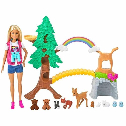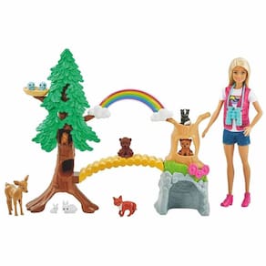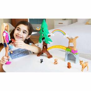 Boneca Articulada - Barbie Profissões - Exploradora - Loira - Mattel: explore um mundo de diversão com a vida selvagem com o conjunto Barbie Exploradora. Quando uma criança brinca com Barbie, ela imagina tudo o que ela pode ser. E se você ama aventura e os animais, você pode ser um guia na selva. O Explorador é um profissional reinado que desenvolve, organiza e lidera atividades na natureza em grupo, como caminhadas, trilhas e acampamentos em meio à natureza. Você gosto de explorar a vida ao ar livre? Você pode ser uma Exploradora • Detalhes - Este conjunto de brinquedos simula um ambiente ao ar livre com: árvore, ponte, caverna e um lindo arco-íris suspenso. - A Barbie vem vestida para a natureza e usa um colete esportivo, shorts, botas e binóculos para mostrar o caminho aos turistas. - Dez animais (raposa, cervo bebê, 2 ursos bebês, furão, 2 pássaros, 2 coelhinhos e um esquilo) podem descansar, se esconder e explorar este divertido ambiente interativo. INFORMAÇÕES: • Produto: Boneca Barbie Exploradora • Marca: Mattel • Coleção: Barbie Profissões • Tipo: Conjunto com Playset e Boneca Articulada • Categoria: Bonecas e Cia • Tamanho: 30 cm de altura • Conteúdo: Boneca, 10 animais, árvore, ponte, caverna e um lindo arco-íris suspenso • Recomendação: para crianças a partir de 3 anos de idade ESPECIFICAÇÕES: • Referência: GTN60 • Código de Barras: 887961918700 • Embalagem (C x A x L): 40 x 33 x 08 cm • Embalagem (Peso): 0.780 kg • Material / Composição: Plástico • Registro: CE-BRI/INNAC-00128-05A-NM-300/2002 • Certificado: Órgãos Autorizados - OCP´S (Organismos de Certificação de Produtos) BENEFÍCIOS DE BRINCAR: - Eleva a autoestima - Exercita a memória - Estimula o raciocínio - Exercita o imaginário - Desenvolve a criatividade - Desenvolve percepção visual - Desperta a atenção e curiosidade - Desenvolvimento neuropsicológico - Estimula habilidades motoras básicas - Incentiva a comunicação e linguagem - Desenvolve aspectos emocionais e afetivo - Estimula o reconhecimento de formas e cores AVISO: - As imagens são meramente ilustrativas - Os tamanhos e medidas são aproximados - As cores e estampas dos produtos podem ter variações - As informações são de responsabilidade do fabricante ou fornecedor