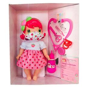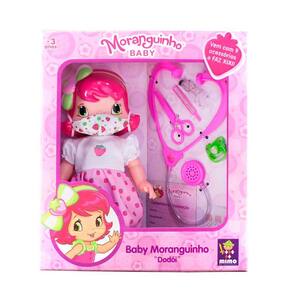 Boneca Articulada - Moranguinho “Dodói” - 33 cm - Mimo Toys: A frutinha mais doce e fofa das telinhas agora é fielmente representada nesta linda e cheia de detalhes boneca articulada Moranguinho. Cuide dela como ela merece, de água na mamadeira e não esqueça de leva-la ao troninho para fazer xixi! Com chupetinha e mordedor ela terá todos os cuidados necessários para uma infância feliz e bem cuidada, tornando a brincadeira ainda mais imersiva. Cuide muito bem da saúde dela com seu kit de saúde, monitore seus batimentos, use o termômetro para verificar sua temperatura, adesivos de band-aid e mais! A criança irá adorar trocar e cuidar dela como se fosse um bebê de verdade! • Detalhes - Design e detalhes autênticos - Colorido e carismático - 5 pontos de articulação - As crianças podem estimular sua criatividade cuidando da Moranguinho de forma livre e intuitiva - Acompanha 9 acessórios para pura diversão e cuidados com a boneca - Cuide bem de sua saúde com o kit médico que acompanha a boneca! INFORMAÇÕES: • Produto: Baby Moranguinho Dodói • Marca: Mimo Toys • Tipo: Boneca Articulada • Tamanho Embalagem: 38 cm (A) • Conteúdo: 1 boneco, 1 tesoura, 1 chupeta, 1 máscara com detalhes de morango, 1 carteirinha de vacinação, 1 seringa, 1 termômetro, 4 adesivos e 1 estetoscópio. • Recomendação: para crianças maiores de 03 anos de idade ESPECIFICAÇÕES: • Referência: 4002 • Código de Barras: 7899347640023 • Embalagem (C x A x L): 32,5 x 38 x 13,5 cm • Embalagem (Peso): 0.820 kg • Material / Composição: Plastisol, tinta • Registro: 001147/2019 • Certificado: Órgãos Autorizados - OCP´S (Organismos de Certificação de Produtos) BENEFÍCIOS DE BRINCAR: - Eleva a autoestima - Exercita a memória - Estimula o raciocínio - Exercita o imaginário - Desenvolve a criatividade - Desenvolve percepção visual - Desperta a atenção e curiosidade - Desenvolvimento neuropsicológico - Estimula habilidades motoras básicas - Incentiva a comunicação e linguagem - Desenvolve aspectos emocionais e afetivo - Estimula o reconhecimento de formas e cores AVISO: - As imagens são meramente ilustrativas - Os tamanhos e medidas são aproximados - As cores e estampas dos produtos podem ter variações - As informações são de responsabilidade do fabricante ou fornecedor