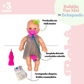 Itens Inclusos: Na compra da Boneca Infantil Faz Xixi Quando Bebe Água com Acessórios, você receberá 01 boneca, 01 mamadeira, 01 chupeta e 01 fralda. Todos esses itens são essenciais para proporcionar uma brincadeira completa e realista.