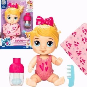 Dar banho na bebê: as crianças irão se divertir na hora do banho com sua nova amiga Frasco com bolhas mágicas: basta inclinar o frasco para ver as bolhas de mentirinha subirem e descerem as crianças podem brincar com o frasco com água ou shampoo infantil Boneca de 28 cm resistente à água: a boneca de 28 cm é ideal para abraçar e carregar por aí Enrolar na toalha: enrolar a boneca na toalha macia com fechos para encaixar Pentear cabelo: as crianças podem brincar de criar penteados com o pente e laço removível.