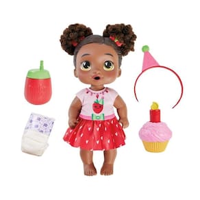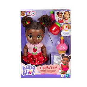A boneca de 28cm de altura Berry Boo Festa de Aniversário com acessórios da Hasbro mal pode esperar para começar a celebração do seu aniversário! As crianças podem brincar de organizar suas próprias festas várias vezes com este kit Baby Alive. Basta colocar a faixa de cabelo chapéu de festa para começar a comemoração. As crianças podem brincar de soprar a velinha com o cupcake de mentirinha! Depois que ela beber água da mamadeira, vai fazer xixi e molhar a fralda! Chame toda a turminha para se divertirem.