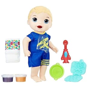 Conheça o Luke, mais uma novidade Baby Alive. Com ele você pode brincar de dar papinha, trocar a sua fralda e se divertir muito. Um lindo garotinho que adora fazer lanchinhos com a mamãe ou o papai. Com a comida sólida reutilizável e o moldador, as crianças podem soltar a imaginação e fazer diferentes tipos de comidinha de mentirinha para ele. Contém na embalagem: 01 Boneco loiro 02 Refis de comida 01 Colher 01 Pratinho 01 Molde comidinhas 01 Fraldas Especificações: Marca: Hasbro Modelo: Baby Alive Meu Primeiro Filho Loiro C1883 Idade recomendada: A partir de 3 anos Altura: Aproximadamente 30Cm Certificado: Segurança CE-BRI/QB-5128 NM300/2002