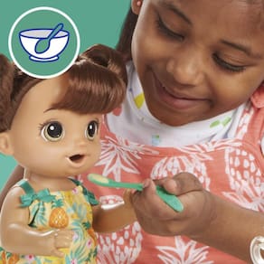Olha só que boneca fofa! É muito divertido fazer papinhas para a Boneca Baby Alive - Misturinha com Liquidificador - Morena - Hasbro. O liquidificador funciona de verdade. Basta abrir 1 dos 2 sachês incluídos de comida em pó para boneca, colocar no liquidificador com 3 colhes de sopa (15 ml) de água e apertar o botão para fazer a comida da bebê. A boneca vem com uma colher e um pente. A boneca bebe água, faz xixi e faz caquinha. Depois de comer, a boneca pode beber água da mamadeira. A Baby Alive Sabor Tropical é uma gracinha! DETALHES • Com liquidificador que funciona de verdade: a bebê está pronta para o lanche. As crianças podem se imaginar fazendo papinhas num liquidificador que funciona! Basta adicionar comida rosa para boneca e água no liquidificador e apertar o botão para misturar • Ela gosta de comer e beber: depois de fazer a papinha da bebê e alimentá-la, basta lhe dar água com a mamadeira. A boneca adora comer e beber! • Ela faz xixi e caquinha: depois de comer e tomar a mamadeira, a bebê vai precisar mudar a fralda! A boneca misturinha faz xixi e caquinha. • Roupa removível e pente: está linda boneca vem com um vestido temático e um pente. • As crianças vão se divertir ao fazer o suco no liquidificador, alimentar a bebê e trocar as suas fraldas. INFORMAÇÕES: • Produto: Baby Alive Misturinha Sabor Tropical • Marca: Hasbro • Tamanho: 35 cm (aproximadamente) • Conteúdo: boneca com roupa removível, 2 fraldas, 2 sachês de comida para boneca, liquidificador, mamadeira, colher, pente e instruções. • Idade recomendada: para crianças a partir de 3 anos de idade. AVISO: • As imagens são meramente ilustrativas. As cores e estampas dos produtos podem ter variações. As informações são de responsabilidade do fabricante ou fornecedor.