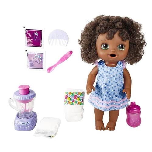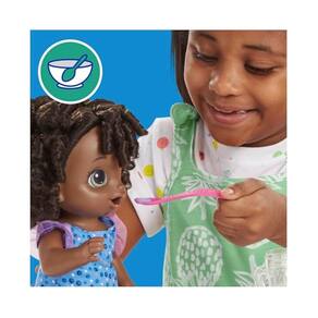 É muito divertido fazer papinhas para a bebê Misturinha com o liquidificador que funciona de verdade. A bebê está pronta para o lanche! As crianças podem se imaginar fazendo papinhas num liquidificador que funciona! Basta adicionar comida rosa para boneca e água no liquidificador e apertar o botão para misturar.