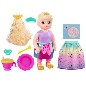 - Contém: 1 Boneca Baby Alive Loira e 9 Acessórios de princesa
