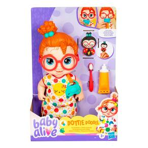 É hora de dormir e a boneca precisa ir para a cama! A Baby Alive acompanha vários acessórios para deixar a brincadeira ainda mais divertida para as crianças!! Crie cenários e conte belas histórias para sua bebê dormir! A bebê fecha os olhinhos quando ela recebe a chupeta. Com a escova de dente e pasta de dente de mentirinha, as crianças podem usar a criatividade e cuidar dos dentinhos da boneca antes de dormir. As crianças podem contar lindas histórias de dormir para a bebê com um marionete de dedo. A bebê acompanha um pijama super fofo.