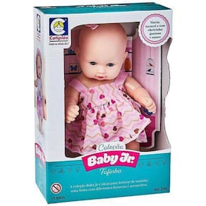 Boneca Baby Junior Fofinha com Laço Cotilpás A coleção Baby Junior é ideal para brincar de mamãe LINDA .CHEIROSA, Características: Marca: Cotiplás Idade Recomendada: A partir de 24 meses Material/composição: VINIL Certificação do INMETRO: Sim CE-BRI/IQB-OCP006