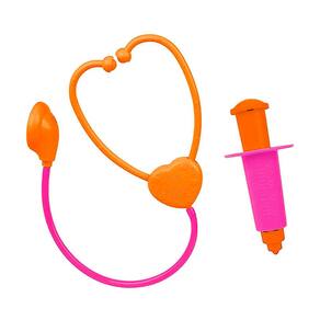 Uma boneca linda para te fazer companhia e ela acompanha seringa e estetoscópio de brinquedo!