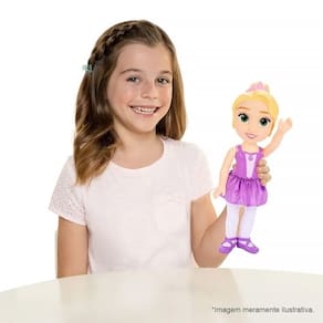 A boneca Rapunzel Bailarina é super encantadora e está pronta para se juntar a você em qualquer brincadeira. Possui 38 cm de altura com olhos pintados e saia estilo tutu em tecido, deixando-a ainda mais encantadora para as brincadeiras com sua princesa preferida!