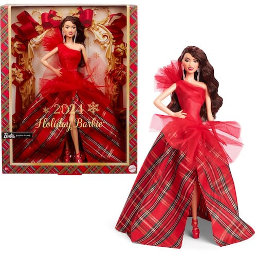 Bonecas Barbie Barbie de Natal de 2024, brinquedo de colecionador sazonal, assinatura da Barbie, vestido xadrez com laço vermelho, embalagem exibível, cabelo castanho escuro — celebre o espírito festivo com a boneca Barbie de Natal de 2024, representando a elegância, o calor e o conforto da temporada! - Seu vestido vermelho drapeado de um ombro apresenta brilhos brilhantes que permitem que ela brilhe e brilhe na embalagem! - O vestido se destaca com uma saia xadrez volumosa com uma fenda moderna para as pernas, enquanto brincos prateados adicionam mais elegância natalina! - O look é complementado com seu volumoso cabelo castanho escuro penteado lateralmente com ondas glamorosas, lábios vermelhos ousados, unhas metálicas douradas e saltos combinando! - Que esta boneca Barbie de Natal de 2024 traga momentos de paz e prazer para famílias em todos os lugares! Uma bela embalagem a torna perfeita para presentear e exibir.
