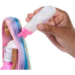 - Quer continuar brincando de cabeleireira? É só enxaguar e repetir! Passe o cabelo da boneca Barbie em água corrente para remover o glitter e comece uma nova obra-prima capilar. [PRODUTO INTERNACIONAL / COMPRA INTERNACIONAL] Atenção! Este produto é de origem internacional e está sujeito aos procedimentos e regulamentações aplicáveis à importação de bens para uso pessoal no país de destino. O consumidor é responsável por garantir que o produto esteja em conformidade com quaisquer exigências locais, certificações ou autorizações necessárias para seu uso. Por favor, verifique as leis e diretrizes aplicáveis das autoridades reguladoras do seu país antes de concluir a compra.