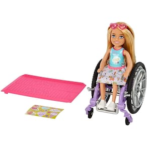 Chelsea doll e seus amigos inspiram jovens imaginações a explorar seu mundo Esta adorável boneca Chelsea inspira novas possibilidades de jogo com uma cadeira de rodas com detalhes realistas e rodas rolando. Uma rampa permite acessibilidade e brincadeiras realistas, e uma folha de adesivos permite que as crianças personalizem a cadeira de rodas e rampa de sua boneca A boneca Chelsea usa um top moldado com um gráfico de cachorrinho divertido e saia removível com uma estampa doce, além de tênis brancos legais e óculos de sol em forma de coração. Bonecas Barbie Chelsea fazem ótimos presentes para crianças de 3 anos ou mais. Eles podem coletar todos eles para inspirar ainda mais histórias Ean: 194735054312