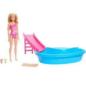 Você pode mergulhar na diversão de verão com a boneca Barbie e sua piscina É fácil de encher e esvaziar, para uma festa na piscina. Ajude a Barbie a subir a escada e descer pelo escorregador, depois relaxe na água com uma bebida refrescante Com uma estética bonita e colorida que fará barulho na hora de brincar, esse conjunto de boneca e piscina é um presente perfeito para crianças a partir de 3 anos de idade.