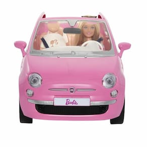 Contem: 1 Carro Conversivel Fiat 500 e 1 Boneca Barbie.