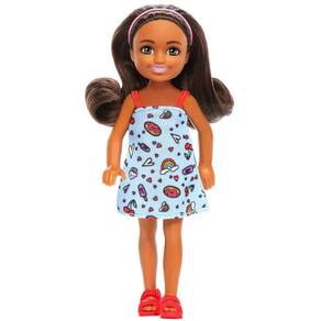 Boneca - Barbie - Familia Chelsea Club - Morena Vestido Azul Sandalia Vermelha - MATTEL