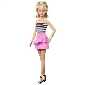 Boneca Barbie Fashionista Loira Blusa Listrada e Saia Rosa - Mattel