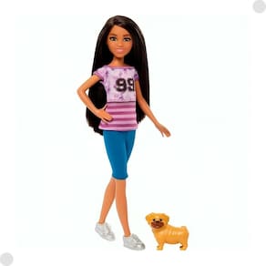 Esta boneca Ligaya ajuda você a entrar na aventura de Barbie e Stacie ao Resgate Ela é amiga da Stacie e se parece com a personagem do filme, com seus longos cabelos escuros, roupas e acessórios esportivos. A boneca Ligaya também vem com um adorável cachorrinho de estimação para que as crianças possam viver aventuras ainda mais emocionantes com a Ligaya A boneca não pode ficar em pé sozinha. As cores e as decorações podem variar.