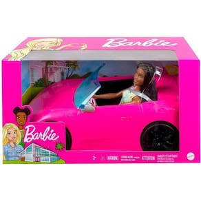 Boneca Barbie Negra com Carro Conversível Rosa - HBY30 - Mattel - Dorémi Brinquedos As crianças podem pegar a estrada para se divertir contando histórias com a boneca Barbie e seu veículo conversível rosa choque. Elegante carro conversível com formato esportivo, assento para dois, detalhes realistas como grade e rodas pretas foscas, cintos de segurança e detalhes em prata. Toques divertidos com o estilo exclusivo da Barbie incluem uma placa de identificação personalizada e o emblema do capuz da silhueta da Barbie. Vestindo um vestido moderno com estampa de estrelas e elegantes sapatos rosa, a boneca Barbie está pronta para qualquer aventura que as crianças possam imaginarCertificação inmetro: ce-bri/innac: 00128-78a nm 300/2002.Homologação Inmetro: IP-BRI-0807/2021-06