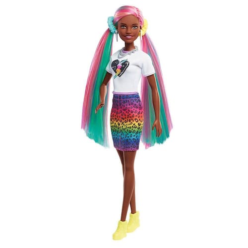 O estilo da boneca Barbie não tem limites e ela adora explorar diferentes cores e estilos para encontrar o visual perfeito! Com a boneca Barbie Leopard Rainbow Hair, as crianças podem ficar "selvagens" com seu longo cabelo cor de arco-íris e escová-lo para o lado para revelar um lindo visual de arco-íris! Para ainda mais diversão, eles podem ativar o recurso de mudança de cor na lateral adicionando água fria e ver uma estampa de leopardo aparecer! Tão legal! A boneca Barbie também vem com 14 peças de cabelo e moda para criar várias combinações de roupas e todos os tipos de penteados!