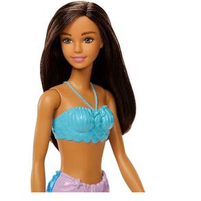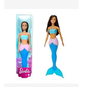 A boneca sereia Barbie estimula a imaginação com um visual brilhante, corpete de conchas e cauda ombré Pode ser dobrada na cintura para simular que está nadando ou sentada ao sol Indicada para crianças a partir de 3 anos, ela inspira histórias de contos de fadas e aventuras submarinas Não nada nem fica em pé sozinha Cores e modelos podem variar; vendida separadamente