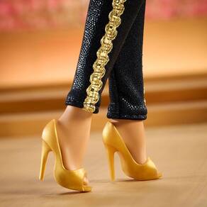 Barbie Boneca exclusiva, Juan Gabriel colecionável em terno chique preto e dourado com jaqueta cortada e acessórios dourados - Esta boneca Barbie presta homenagem ao prolífico compositor, cantor e compositor Juan Gabriel, reconhecido como um dos artistas musicais mais influentes da América Latina. - Em homenagem ao estilo vibrante desta adorada cantora mexicana, a boneca Barbie usa uma jaqueta jacquard dourada sobre um body preto chique. - Seu visual é inspirado no que Juan Gabriel usou durante seu concerto histórico de 1990 no El Palacio de Bellas Artes, um estimado centro cultural na Cidade do México conhecido em todo o mundo. - Juan Gabriel expressou seu amor pelo México através da moda e da música usando roupas mariachi no palco. O acabamento dourado no terno da boneca Barbie é inspirado nesta herança estilística. - De uma gargantilha de gravata Barbie um microfone para ajudá-la a cantar junto com as músicas de "El Divo de Juárez", o lindo visual de uma boneca celebra a carreira de quase 4 décadas de uma verdadeira lenda musical. - A boneca Juan Gabriel Barbie vem em uma linda embalagem de lembrança, tornando-a um presente maravilhoso para fãs de "Juanga" e colecionadores de Barbie iguais.