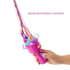 Penteie o cabelo da boneca Barbie, insira duas ou três contas de pavio no dispositivo de trança e pressione o botão para criar estilos de cabelo únicos e variados Você também pode trançar o cabelo loiro da boneca Barbie usando as 3 contas de pavio fornecidas.