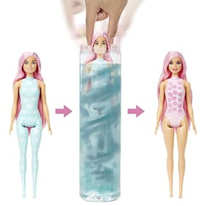 PRODUTO INTERNACIONAL. As bonecas Barbie Color Reveal são uma ótima opção para quem adora surpresas! Cada embalagem apresenta uma boneca com um visual secreto que só é revelado depois de mergulhada em água morna.