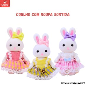 Boneca Bay Dreamy Banheira Coelhinha CBS1020 - Castela DESCRIÇÃO DO PRODUTO A Banheira Coelho Bay Dreamy da Castela é um mini cenário encantador que proporciona diversão e imaginação para as crianças. Acompanha uma adorável coelhinha e acessórios de banho em miniatura, perfeitos para compor brincadeiras de faz de conta. Atenção: a roupinha da coelhinha é e pode variar conforme o lote. CARACTERÍSTICAS TÉCNICAS: Conteúdo da Embalagem: 1 coelho + banheira + acessórios de banho em miniatura Dimensões Aproximadas do Produto: altura x Largura x Comprimento/Profundidade : 9 cm altura média do personagem Dimensões Aproximadas da Embalagem: altura x Largura x Comprimento/Profundidade : 12 cm x 16 cm x 21 cm Material/composição: Plástico e tecido Idade Mínima Recomendada: A partir de 3 anos Participantes: A partir de 1 pessoa Alimentação: Não se aplica Marca: Castela Referência: CBS1020 Outras informações: As cores e roupas dos personagens podem variar entre as imagens mostradas acima e o produto. Imagens meramente ilustrativas. Aviso: As informações e imagens divulgadas são de total responsabilidade do fabricante/fornecedor. APROVADO PELO INMETRO Homologação Inmetro: CE-BRI/IQB 002295 54761/21-047 Marca: Não Informado