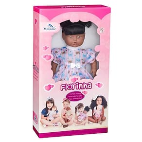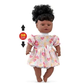 A boneca Isadora é linda e sofisticada. Possui 38 cm de altura, corpo em tecido macio, ideal para ser abraçado, com cabeça, pernas e braços 100% em vinil atóxico, além de cabelos cacheados.