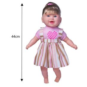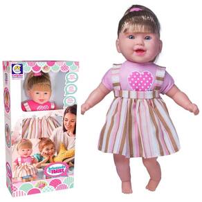 Boneca adorável Brincando Com As Frases, sempre pronta para aventuras! Com cabelos macios que podem ser penteados, olhos brilhantes e um sorriso doce, ela é perfeita para acompanhar as crianças em brincadeiras e momentos especiais. Vestida com um lindo vestidinho colorido.