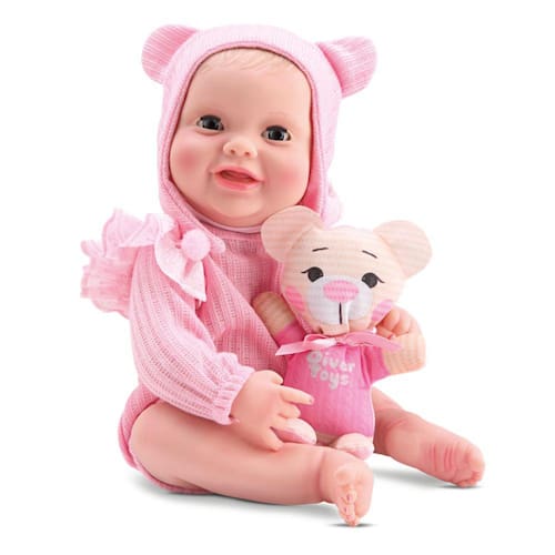 - Conteúdo da Embalagem: 1 Boneca, 1 chupeta, 1 ursinho, 1 fralda, 1 Mamadeira