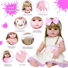 Tags: Boneca, Bebe, Reborn, Realista, Menina, Infantil, Silicone, Princesa, Linda, Morena, Loira, Fofa, Banho, Enxoval, Completo, Grande, Baby Alive.