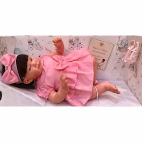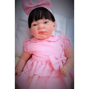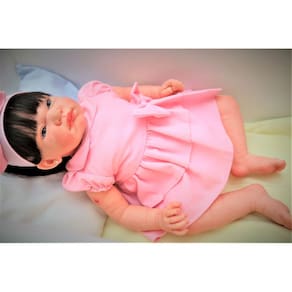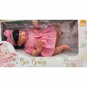 A Bee Baby pesa aproximadamente 1.5 kg, tem unhas com francesinha, cílios e cabelos castanhos e olhos azuis. Tem corpo de pano com bracinhos e perninhas de silicone bem macio. Ela usa lindos brincos de pérola, tem marquinha de vacina no bracinho e teste do pezinho. O seu corpinho tem dobrinhas iguais as dobrinhas dos bebezinhos.
