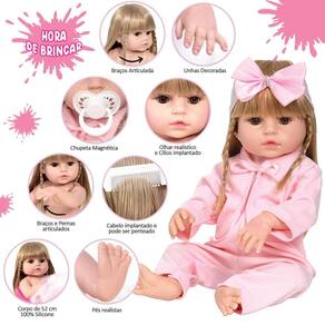 Tags: Boneca, Bebe, Reborn, Realista, Menina, Infantil, Silicone, Princesa, Linda, Morena, Loira, Fofa, Banho, Enxoval, Completo, Grande, Baby Alive.